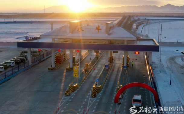 12月26日,无人机航拍的乌尉高速公路永丰匝道收费站。天山网-新疆日报记者韩亮摄