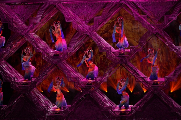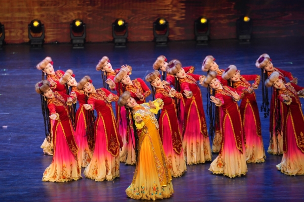 该剧目兼具思想深度与艺术感染力的创作理念,融合舞蹈、声乐、史诗吟唱、非物质文化遗产展示等多种艺术形式,展现新疆多彩瑰丽的文化特色,演出分为《舞从天山来》《歌飞新丝路》《交响昆仑情》三个篇章。从承载着几代人记忆的新疆民歌《花儿为什么这样红》,到展现民族舞蹈精髓的经典曲目《摘葡萄》,再到荣获第十三届中国舞蹈“荷花奖”民族民间舞金奖、第十八届文华节目奖、尽显新疆人民昂扬精神面貌的《阳光下的麦盖提》,以及艺术还原龟兹石窟文化神韵的《龟兹乐舞》等,整台剧目全方位展现了新疆文艺创作的丰硕成果,也生动诠释了各民族交往交流交融的美好图景。