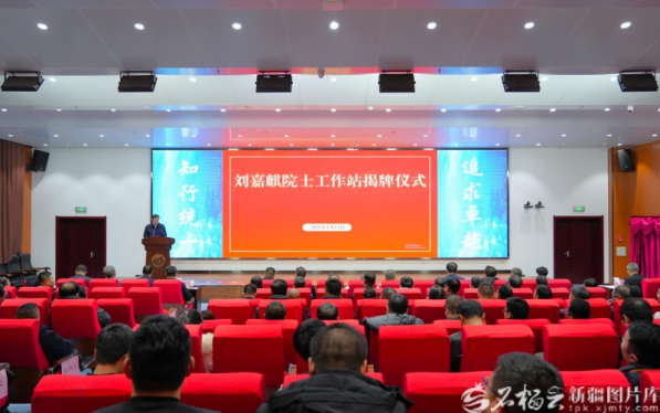 1月13日,刘嘉麒院士工作站在新疆工程学院揭牌成立。石榴云/新疆日报记者赵西娅摄