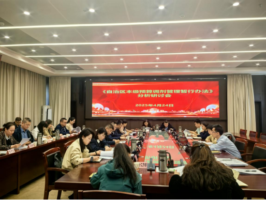 为加强预算调剂管理,规范预算调剂办理程序,切实提高自治区本级预算调剂办法的科学性、适应性、可行性,2025年4月24日,预算处邀请自治区党委政法委等自治区本级16家部门单位财务负责人就自治区本级预算调剂管理办法(送审稿)进行交流研讨。此前,根据出台政策性文件工作规程,预算处已就调剂办法在处内进行3轮集体研究,书面征求了本厅17个处室、本级42家部门意见,并根据反馈意见,及时向相关单位作了解释说明并对调剂办法进行修改完善。