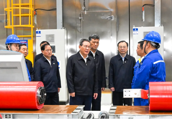 5月7日至9日,中共中央政治局常委、国务院总理李强在新疆调研。这是5月8日,李强在特变电工调研,详细了解企业生产研发、市场开拓等情况。新华社记者饶爱民摄
