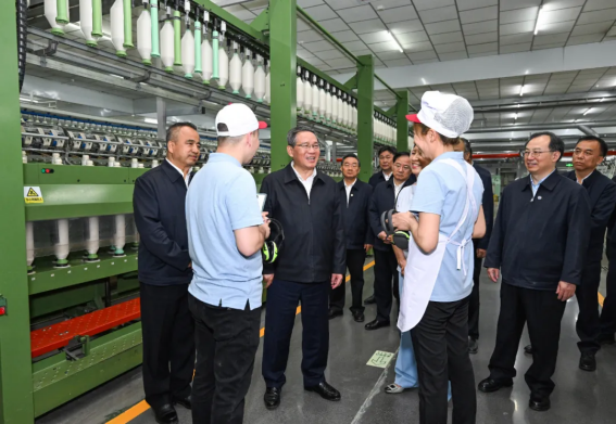 5月7日至9日,中共中央政治局常委、国务院总理李强在新疆调研。这是5月8日,李强在昌吉溢达纺织调研,详细了解企业生产研发、市场开拓等情况。新华社记者饶爱民摄