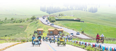 7月14日,游客在新疆奇台江布拉克景区游玩。陶维明摄(影像中国)