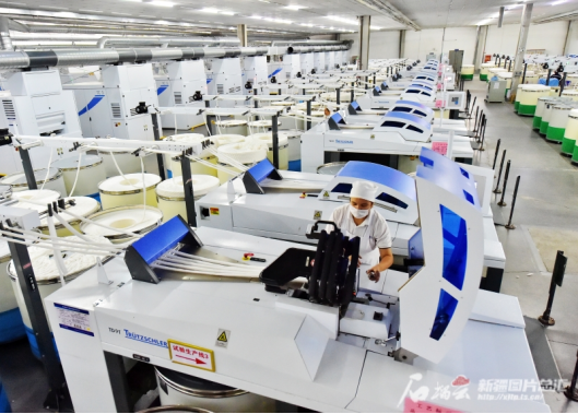 2024年12月11日,位于库尔勒经济技术开发区的一家纺织企业工人正在生产车间作业(资料图)。石榴云/新疆日报记者王立华摄