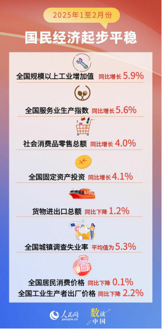 人民网北京3月17日电(记者杨曦)国家统计局今日发布数据显示,1至2月份,一揽子存量政策和增量政策继续发力显效,工业服务业较快增长,消费投资继续改善,就业形势总体稳定,新质生产力成长壮大,经济运行起步平稳,发展态势向新向好。