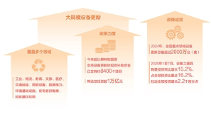 实施新一轮大规模设备更新,是推动高质量发展的重要举措,有利于扩大有效投资、促进产业升级、推动绿色发展、改善人民生活。自去年“两新”工作启动以来,大规模设备更新持续落地见效。日前,国家发展改革委表示,2025年超长期特别国债支持设备更新的投资补助资金已支持约8400个项目,带动总投资超1万亿元。