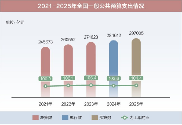 “四本账”中,最大头的是“一般公共预算”。2025年全国一般公共预算支出总规模接近30万亿元。