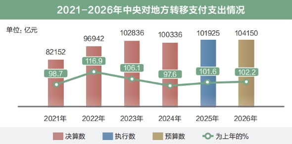 财政转移支付,是实现地区间基本公共服务均等化和促进经济社会各项事业协调发展的重要政策工具。2026年,中央对地方转移支付规模进一步增加,同时,优化转移支付结构,提高转移支付资金效能,增强地方自主可用财力和统筹能力,兜牢基层“三保”底线。