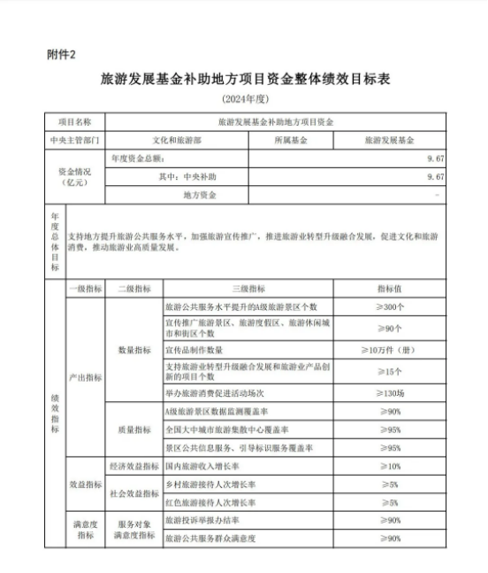 关于下达2024年旅游发展基金补助地方项目资金