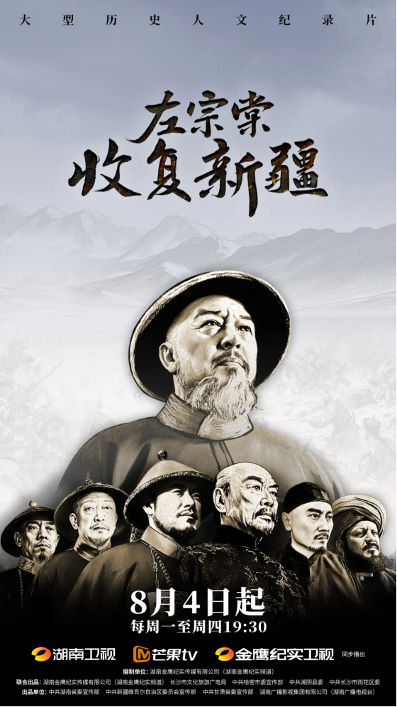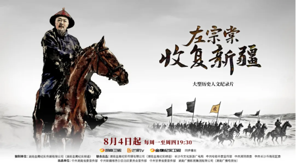 大型历史纪录片《左宗棠收复新疆》,将于2025年8月4日起每周一至周四晚间19:30黄金时段在湖南卫视、芒果TV、湖南金鹰纪实卫视等平台隆重播出,连续播出三周。