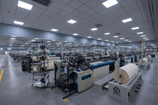 新疆华锦生态纺织印染有限责任公司生产车间高速数智化织机正在织布。徐婷婷摄