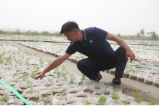 在老兵治沙队文冠果育苗基地,一株株幼苗长势良好,嫩绿的枝叶生长着希望。