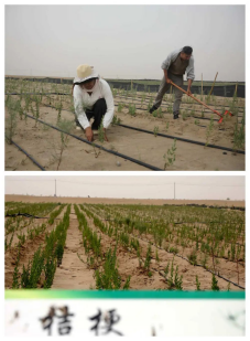 站在民丰县后河坝沙漠阻击区试验田边,一排排滴灌管道伸向远处。管道边,梭梭、柽柳已长出绿叶,套种的桔梗、党参、洋葱、花生等中药材和经济作物长势良好。