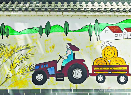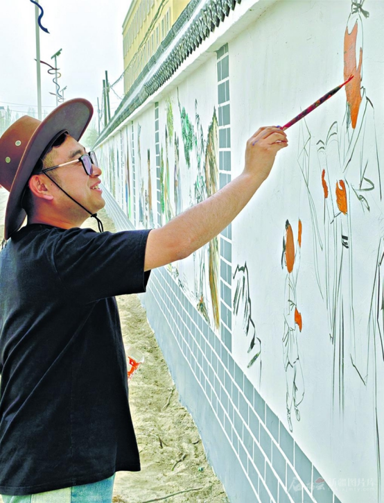 5月20日,在阿瓦提县塔木托格拉克镇塔木托格拉克村,农民画画家正精心绘制文化墙。近年来,阿瓦提县农民画画家以特色风光、民俗文化和乡村振兴成果为主题,用绚丽多彩的笔触扮靓村容村貌,让村庄焕发新活力。