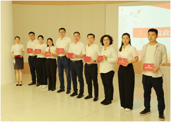 在场全体党员干部庄严地举起右手,在党旗下重温入党誓词,字字铿锵,用无悔的坚守,诠释着共产党人的初心使命,表达着不忘光辉历程,牢记初心使命。随后开展党员过政治生日活动,支部书记刘艳为第三党支部党员同志颁发政治生日卡,通过这一重要的仪式,进一步增强党员的光荣感、责任感和使命感,不断强化党员意识,积极发挥党员先锋模范作用。党员干部阿也提·司马义同志和米热阿依·尼加提同志分享入党初心及感悟。黄真、陈小平、李荔等8名党员同志,带领大家重温党员义务,并用真挚纯朴的话语,向党说出心中的那份炙热和坚定,以誓言映照初心,以行动践行使命。