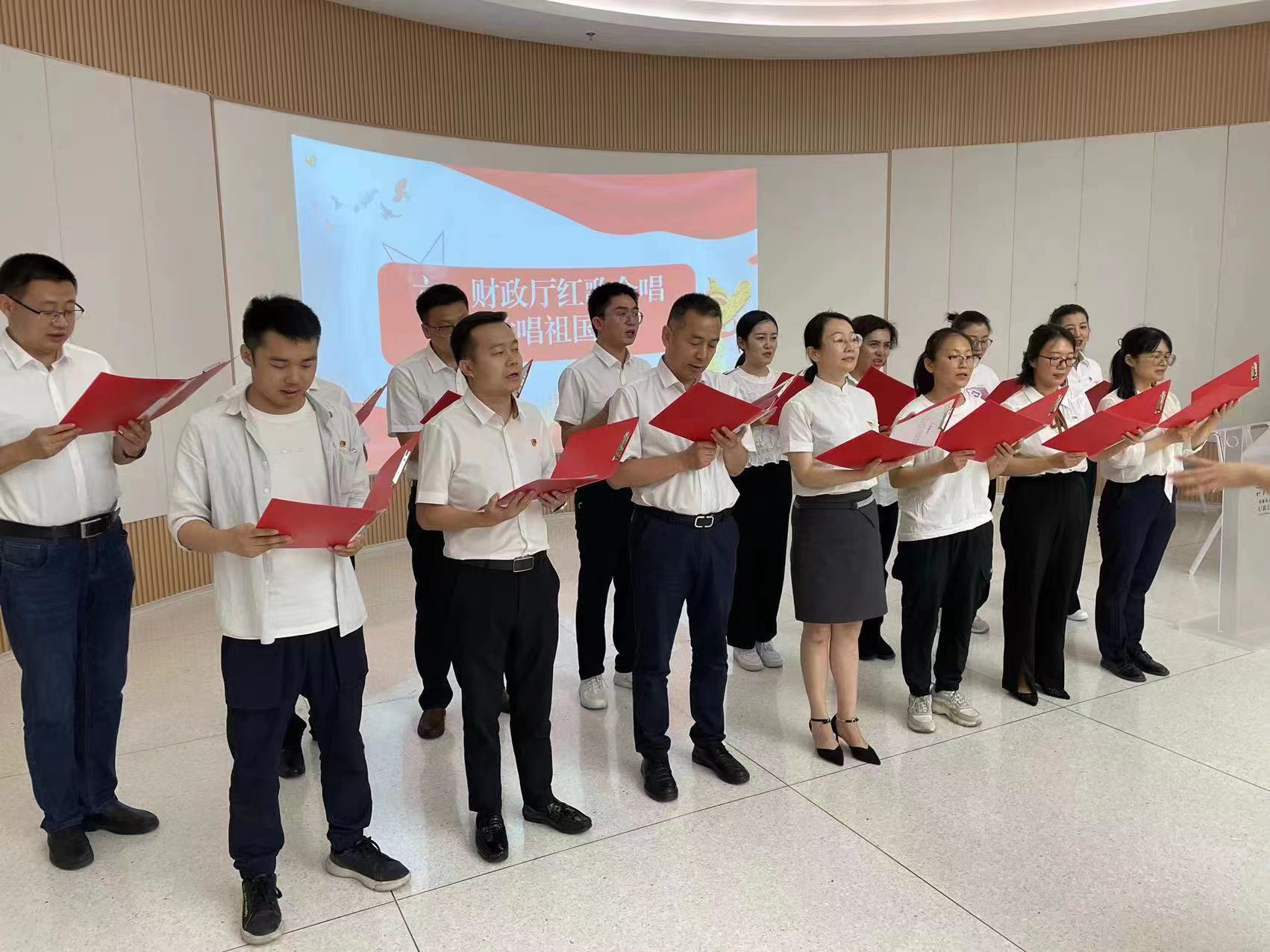 乌鲁木齐市财政局机关第一党支部进行诗朗诵《中华颂》,厅机关第三党支部集体合唱《歌唱祖国》,最后全体党员干部共同合唱《没有共产党就没有新中国》,回顾党的光辉历程,讴歌党的丰功伟绩。大家通过歌声抒发对党和祖国的热爱,是一次寓意深刻的党性教育和灵魂洗礼。