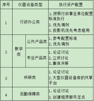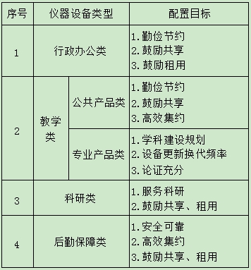 根据高校的预算管理方式和采购经费的来源不同,仪器设备可以分为四类,行政办公类、教学类、科研类及后勤保障类,不同类型的仪器设备有不同的配置特点。