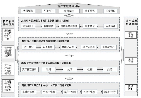 为了加强高校资产管理,我国相关部门及地方省份先后出台了资产管理相关政策文件,学者从资产管理方法、资产管理信息化、资产绩效管理等方面开展研究,为高校资产管理提供有益支持。然而,当前高校资产管理涉及多部门,各部门系统数据孤立,多部门协同管理难度大;资产设备重复购置,难以共享高效利用;管理机构不健全、管理体系不完善、资产使用效率不高、成果转化乏力等一系列问题影响高校资产管理水平。从高校国有资产清查,以及各种审计反映的情况来看,高校资产的配置使用与资产保值增值等任务面临挑战,高等教育高质量发展背景下开展高校资产精细化管理体系建设与优化具有重要意义。