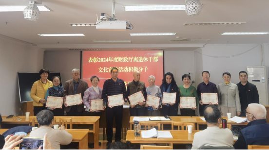 财政厅离退休干部工作处根据参加征文、书画、摄影的人次、作品数量以及获奖的层次及等次,经综合评定,共评选出46名老同志分别获得一、二、三等奖及鼓励奖。为表彰先进,树立榜样,进一步激发广大离退休干部参与文化宣传活动的积极性,2月25日,召开财政厅离退休干部大会,对征文活动中获奖人员进行了表扬,并为2024年宣传活动积极分子代表现场颁发了奖状,鼓励他们继续发挥余热,为财政离退休干部工作贡献力量。