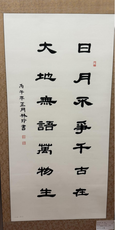 隶书 名句《日月不争千古在 大地无语万物生》 林玲