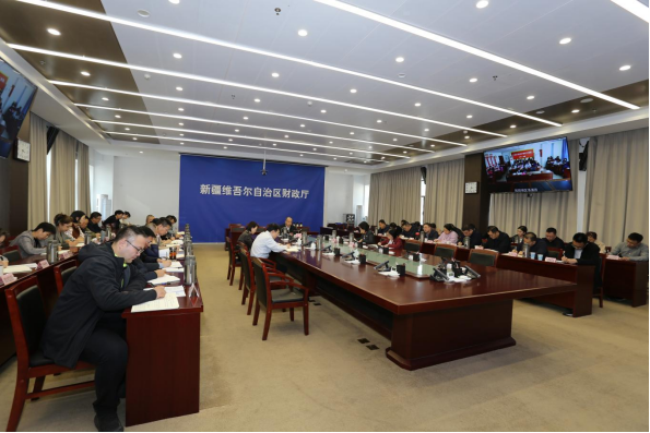 10月27日,自治区财政厅召开干部大会,传达学习党的二十届四中全会精神,安排部署有关工作。自治区财政厅党组书记马勇主持会议并讲话。会议以视频形式召开。在家厅领导,全体干部职工在主会场参加会议,财政厅驻和田地区洛浦县工作队在分会场参加会议。